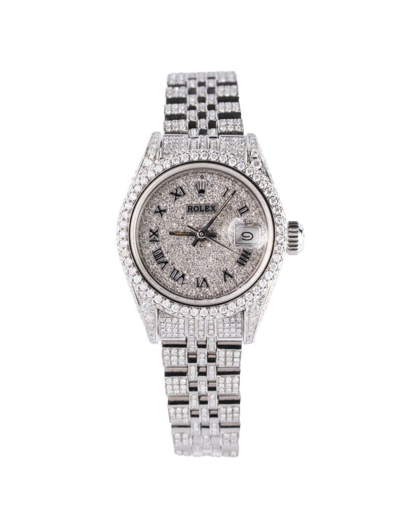 brand: Rolex Reference: 69240 Model: Datejust case MATERIAL: Steel strap: Bracelet case Size (MM): 26mm Dial colour: Diamond Bezel: Diamond Condition: Excellent Box papers : Box