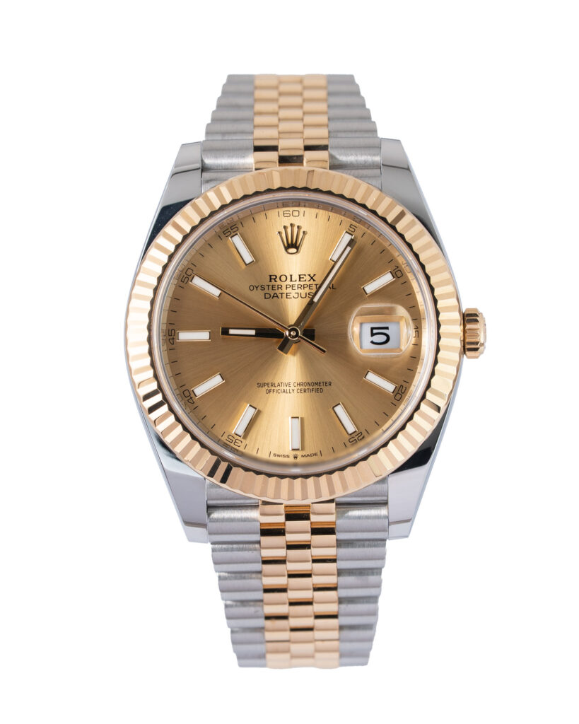 brand: Rolex Reference: 126333 Model: Datejust case MATERIAL: Steel & Yellow Gold strap: Bracelet case Size (MM): 41mm Dial colour: Champagne Bezel: Yellow Gold Year: 03/2022 Condition: Excellent Box papers : Paperwork/box
