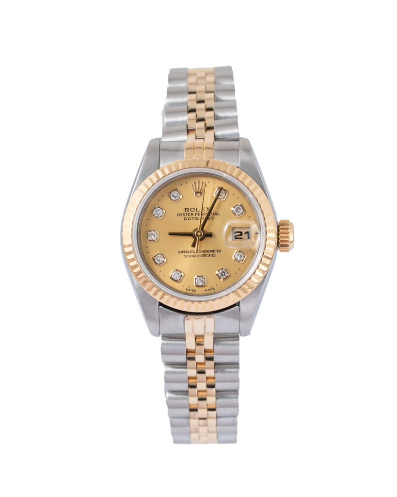 brand: Rolex Reference: 69173 Model: Datejust case MATERIAL: Steel & Yellow Gold strap: Bracelet case Size (MM): 26mm Dial colour: Champagne Bezel: Yellow Gold Condition: Good Box papers : Paperwork