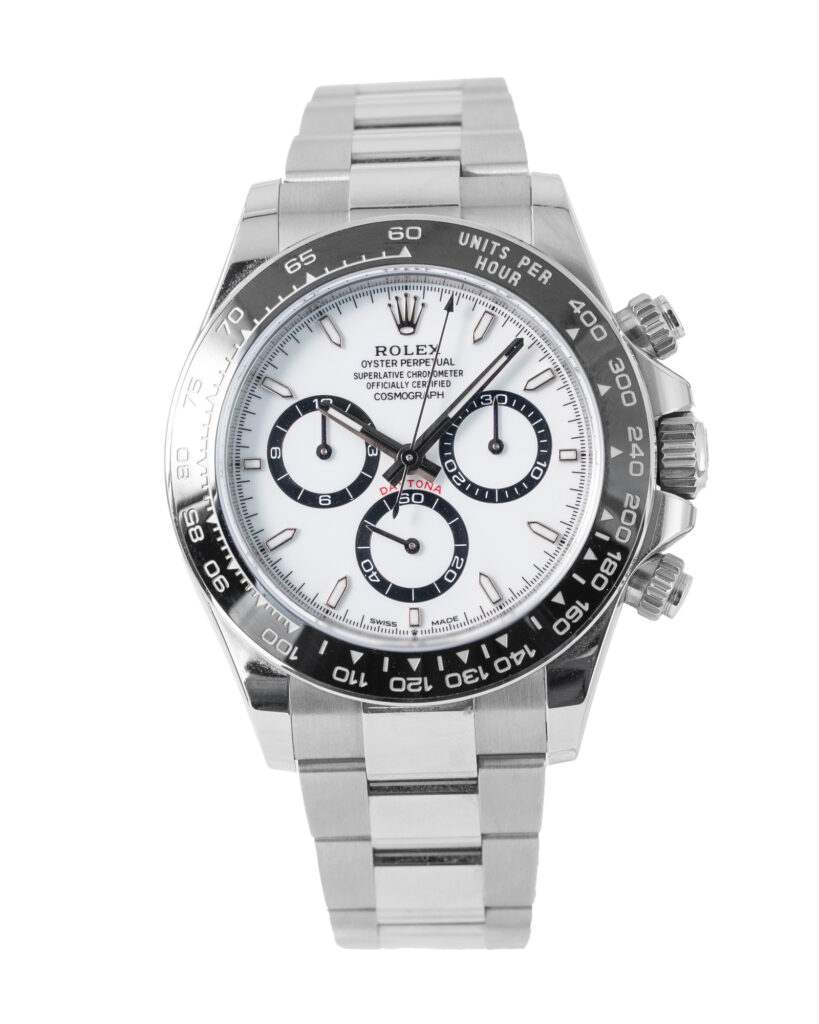 brand: Rolex Reference: 126500LN Model: Daytona case MATERIAL: Steel strap: Bracelet case Size (MM): 40mm Dial colour: White Bezel: Ceramic Year: 08/2025 Condition: Unworn Box papers : Paperwork/box