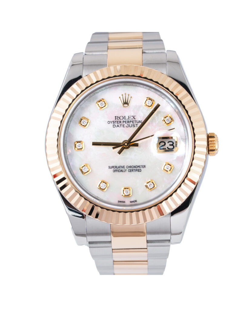 brand: Rolex Reference: 116333 Model: Datejust case MATERIAL: Steel & Yellow Gold strap: Bracelet case Size (MM): 41mm Dial colour: Mother Of Pearl Bezel: Yellow Gold Year: 05/2016 Condition: Excellent Box papers : Box
