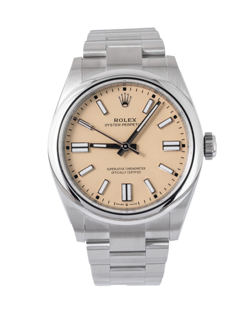 brand: Rolex Reference: 134300 Model: Oyster Perpetual case MATERIAL: Steel strap: Bracelet case Size (MM): 41mm Dial colour: Beige Bezel: Steel Year: 11/2025 Condition: Unworn Box papers : Paperwork/box