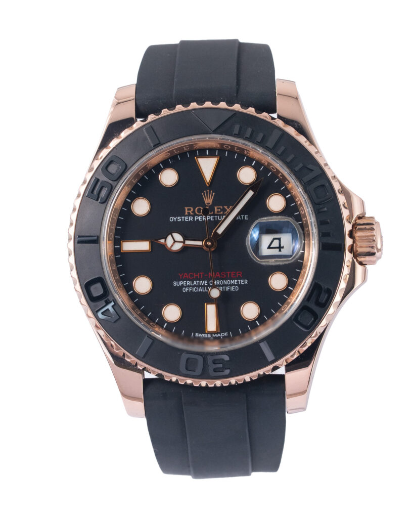 brand: Rolex Reference: 116655 Model: Yacht-Master case MATERIAL: Rose Gold strap: Rubber case Size (MM): 40mm Dial colour: Black Bezel: Ceramic Year: 02/2017 Condition: Excellent Box papers : Box