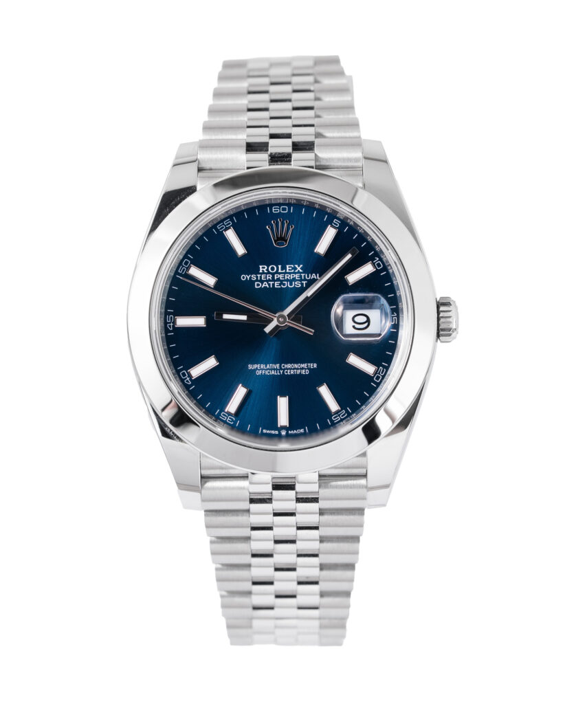 brand: Rolex Reference: 126300 Model: Datejust case MATERIAL: Steel strap: Bracelet case Size (MM): 41mm Dial colour: Blue Bezel: Steel Year: 07/2025 Condition: Unworn Box papers : Paperwork/box