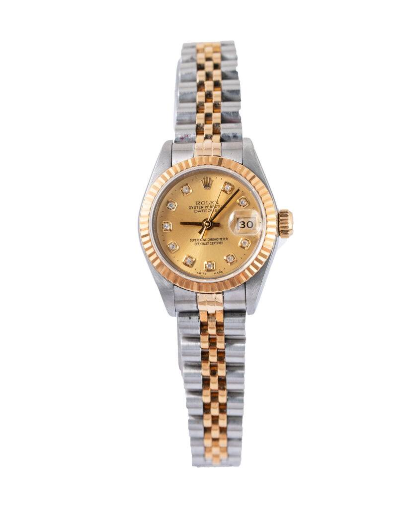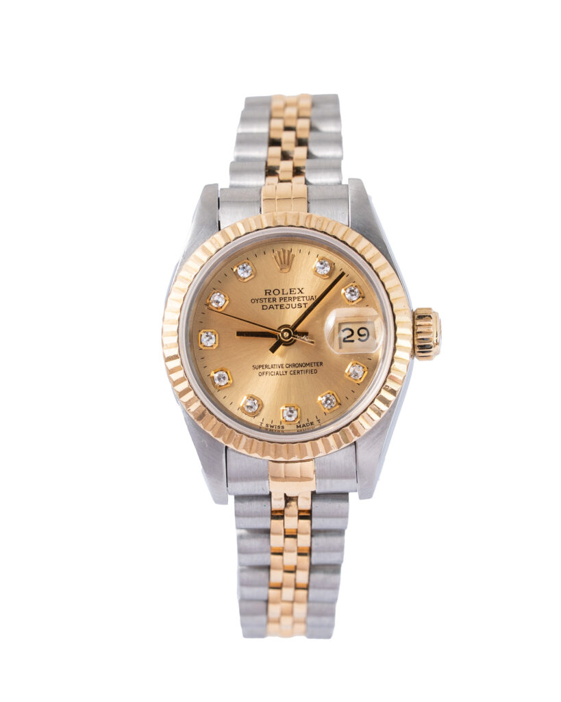 brand: Rolex Reference: 69173 Model: Datejust case MATERIAL: Steel & Yellow Gold strap: Bracelet case Size (MM): 26mm Dial colour: Champagne Bezel: Yellow Gold Condition: Good Box papers : Paperwork