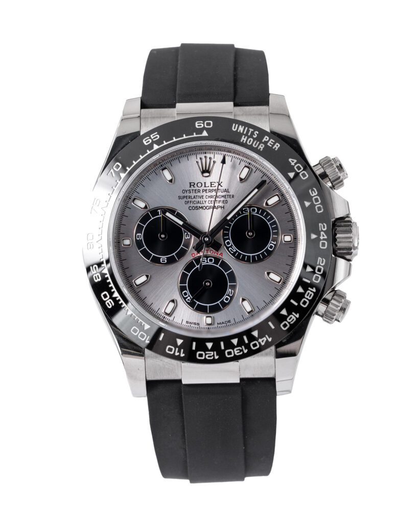 brand: Rolex Reference: 116519LN Model: Daytona case MATERIAL: White Gold strap: Rubber case Size (MM): 40mm Dial colour: Silver Bezel: Ceramic Year: 08/2022 Condition: Excellent Box papers : Paperwork/box