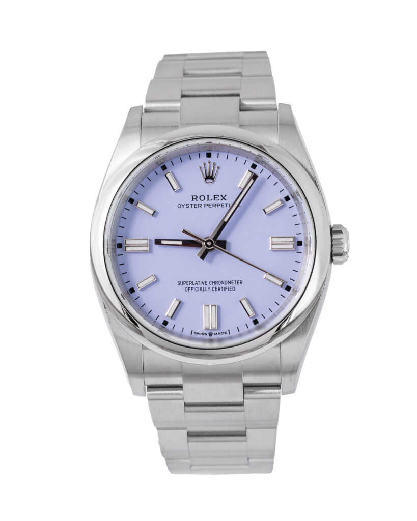 brand: Rolex Reference: 126000 Model: Oyster Perpetual case MATERIAL: Steel strap: Bracelet case Size (MM): 36mm Dial colour: Purple Bezel: Steel Year: 10/2025 Condition: Unworn Box papers : Paperwork/box