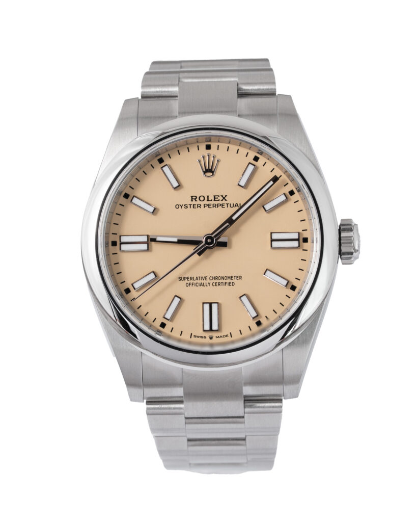 brand: Rolex Reference: 134300 Model: Oyster Perpetual case MATERIAL: Steel strap: Bracelet case Size (MM): 41mm Dial colour: Beige Bezel: Steel Year: 09/2025 Condition: Unworn Box papers : Paperwork/box