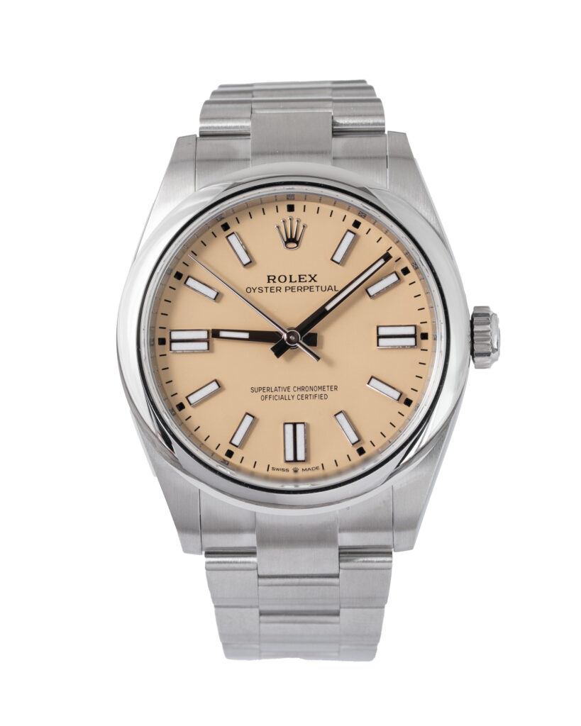 brand: Rolex Reference: 134300 Model: Oyster Perpetual case MATERIAL: Steel strap: Bracelet case Size (MM): 41mm Dial colour: Beige Bezel: Steel Year: 10/2025 Condition: Unworn Box papers : Paperwork/box