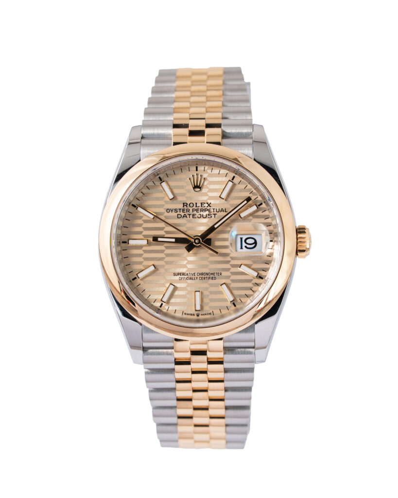 brand: Rolex Reference: 126203 Model: Datejust case MATERIAL: Steel & Yellow Gold strap: Bracelet case Size (MM): 36mm Dial colour: Champagne Bezel: Yellow Gold Year: 12/2023 Condition: Excellent Box papers : Paperwork/box