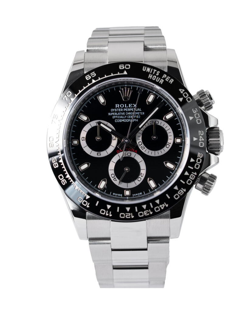 brand: Rolex Reference: 116500LN Model: Daytona case MATERIAL: Steel strap: Bracelet case Size (MM): 40mm Dial colour: Black Bezel: Ceramic Year: 09/2017 Condition: Excellent Box papers : Paperwork/box