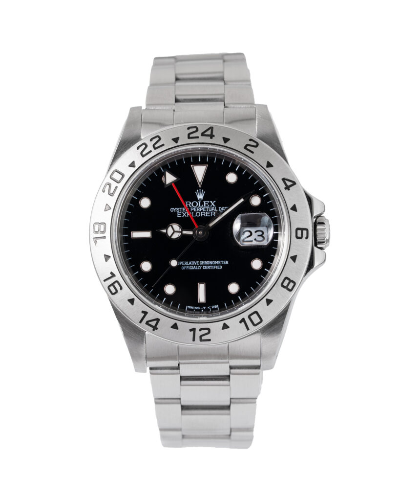 brand: Rolex Reference: 16570 Model: Explorer II case MATERIAL: Steel strap: Bracelet case Size (MM): 40mm Dial colour: Black Bezel: Steel Year: 10/2007 Condition: Excellent Box papers : Paperwork/box