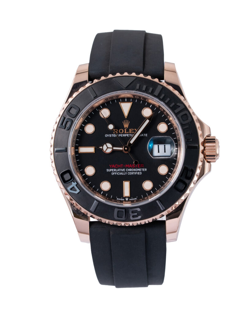 brand: Rolex Reference: 126655 Model: Yacht-Master case MATERIAL: Rose Gold strap: Rubber case Size (MM): 40mm Dial colour: Black Bezel: Ceramic Year: 08/2020 Condition: Excellent Box papers : Paperwork/box