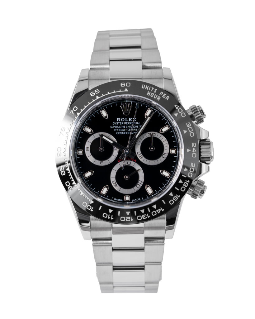 brand: Rolex Reference: 116500LN Model: Daytona case MATERIAL: Steel strap: Bracelet case Size (MM): 40mm Dial colour: Black Bezel: Ceramic Year: 09/2021 Condition: Excellent Box papers : Paperwork/box
