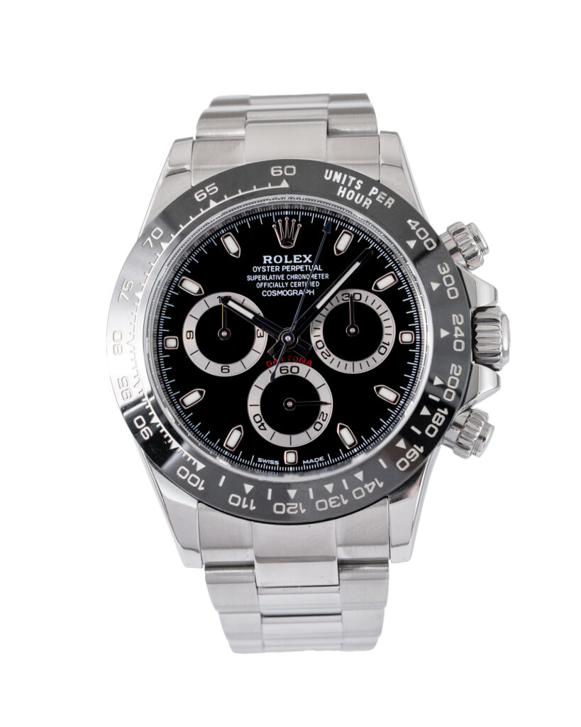 brand: Rolex Reference: 116500LN Model: Daytona case MATERIAL: Steel strap: Bracelet case Size (MM): 40mm Dial colour: Black Bezel: Ceramic Year: 06/2016 Condition: Excellent Box papers : Paperwork/box