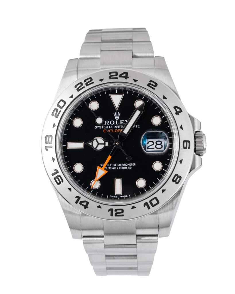 brand: Rolex Reference: 216570 Model: Explorer II case MATERIAL: Steel strap: Bracelet case Size (MM): 42mm Dial colour: Black Bezel: Steel Year: 07/2019 Condition: Excellent Box papers : Paperwork/box