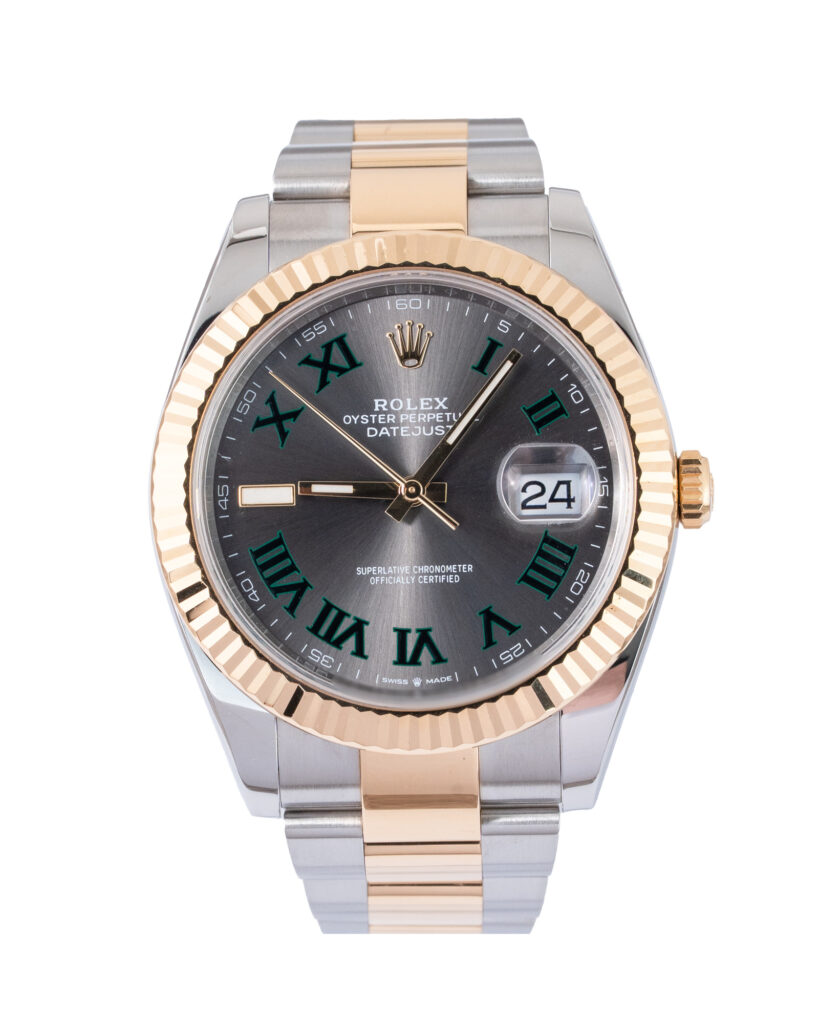 brand: Rolex Reference: 126333 Model: Datejust case MATERIAL: Steel & Yellow Gold strap: Bracelet case Size (MM): 41mm Dial colour: Grey Bezel: Yellow Gold Year: 05/2023 Condition: Excellent Box papers : Box