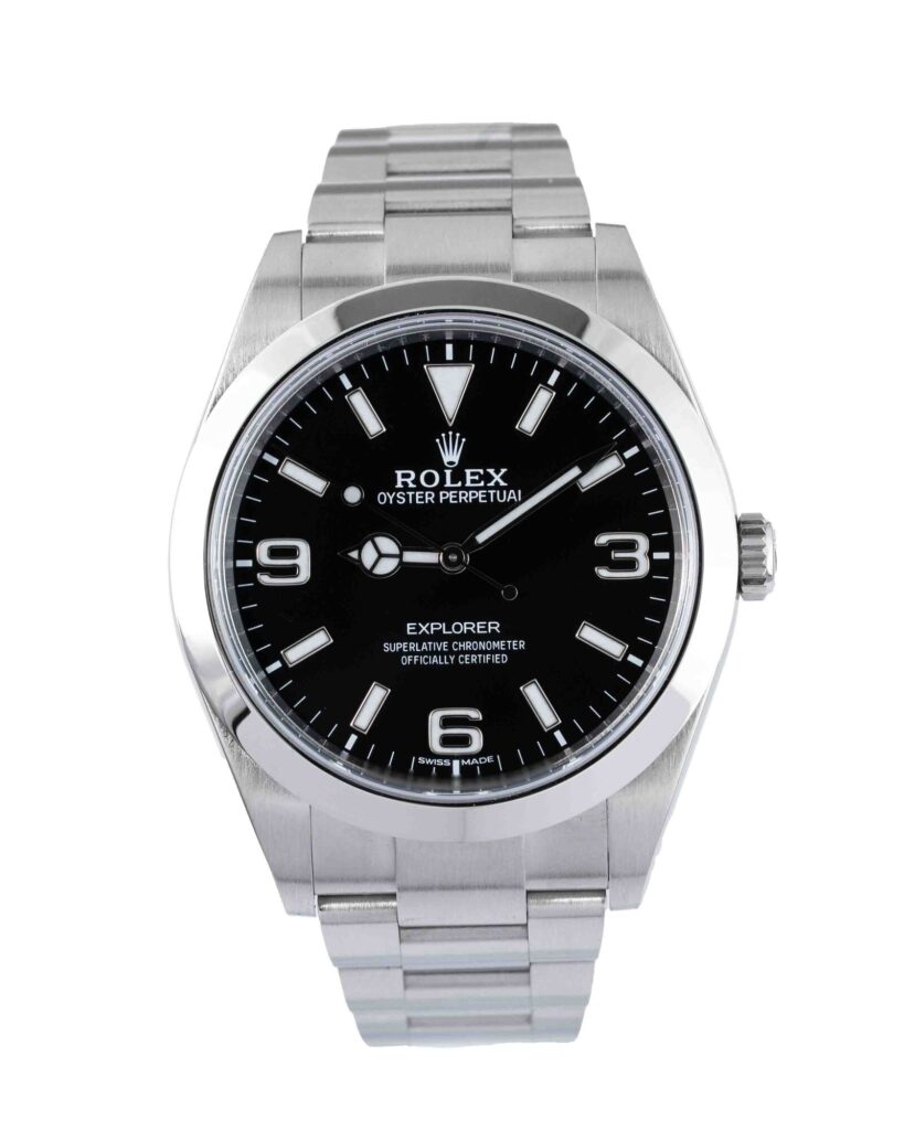 brand: Rolex Reference: 214270 Model: Explorer case MATERIAL: Steel strap: Bracelet case Size (MM): 39mm Dial colour: Black Bezel: Steel Condition: Excellent Box papers : Box