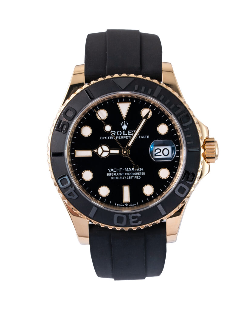 brand: Rolex Reference: 226658 Model: Yacht-Master case MATERIAL: Yellow Gold strap: Rubber case Size (MM): 42mm Dial colour: Black Bezel: Ceramic Year: 09/2022 Condition: Excellent Box papers : Paperwork/box
