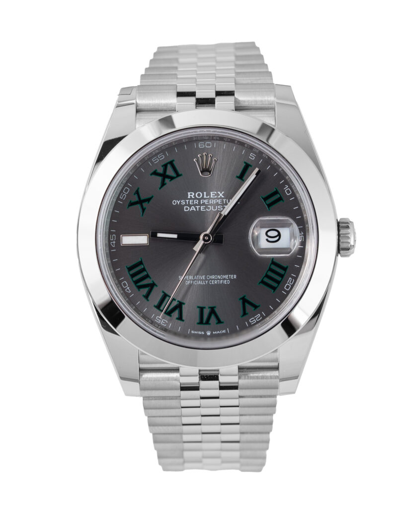 brand: Rolex Reference: 126300 Model: Datejust case MATERIAL: Steel strap: Bracelet case Size (MM): 41mm Dial colour: Grey Bezel: Steel Year: 09/2025 Condition: Unworn Box papers : Paperwork/box