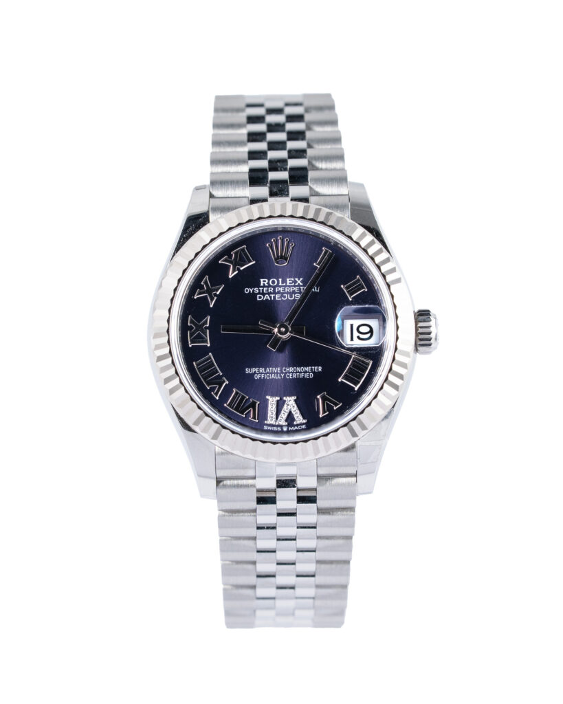 Make: Rolex Reference: 278274 Model: Datejust Case: Steel Bracelet: Bracelet Size: 31mm Dial colour: Purple Bezel: Fluted Year: 09/2025 Condition: Excellent Box papers : Paperwork/box