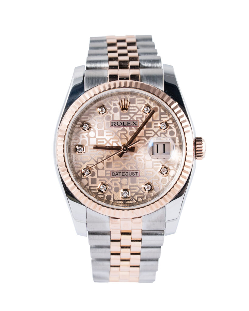 Make: Rolex Reference: 116231 Model: Datejust Case: Steel & Rose Gold Bracelet: Bracelet Size: 36mm Dial colour: Pink Bezel: Rose Gold (RG) Year: 06/2015 Condition: Excellent Box papers : Paperwork/box