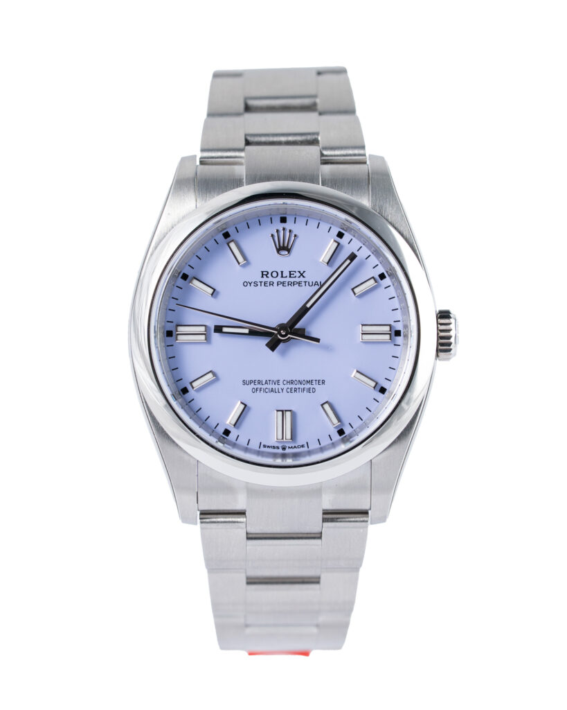 Make: Rolex Reference: 126000 Model: Oyster Perpetual Case: Steel Bracelet: Bracelet Size: 36mm Dial colour: Lavender Bezel: Smooth Year: 09/2025 Condition: Unworn Box papers : Paperwork/box