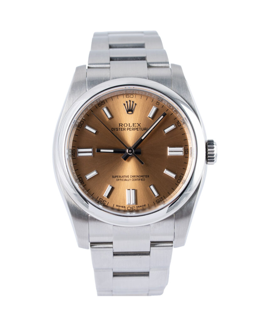 Make: Rolex Reference: 116000 Model: Oyster Perpetual Case: Steel Bracelet: Bracelet Size: 36mm Dial colour: Champagne Bezel: Smooth Year: 11/2017 Condition: Excellent Box papers : Paperwork/box