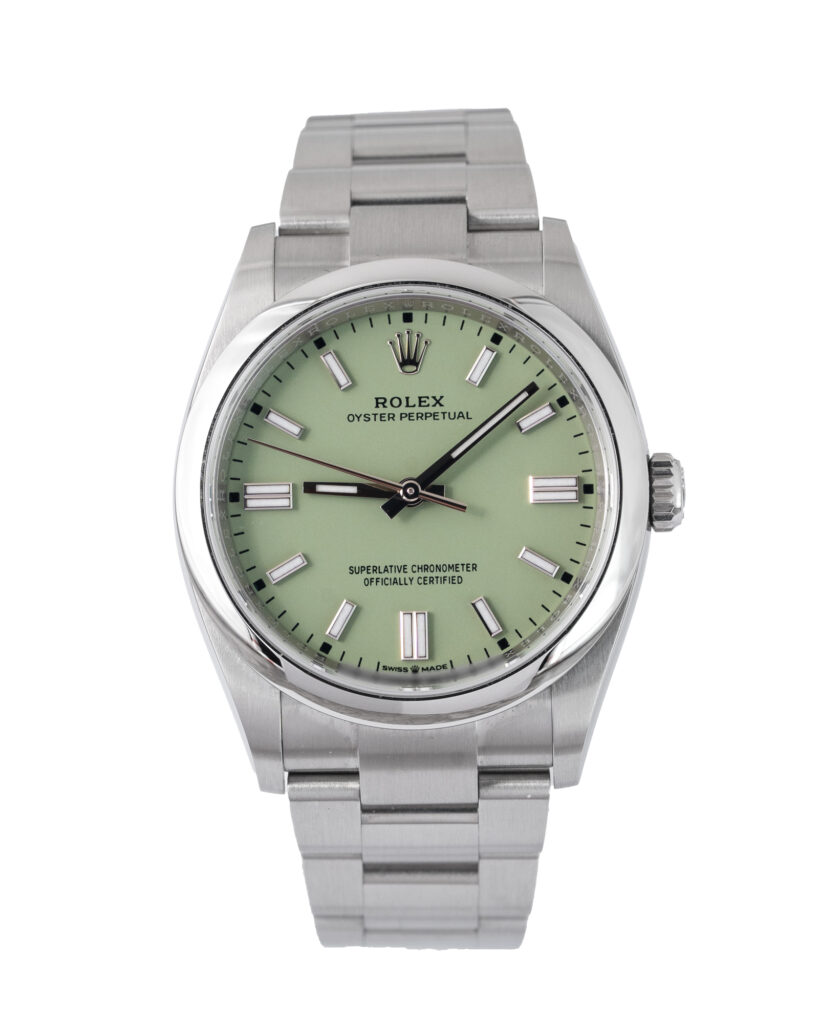 brand: Rolex Reference: 126000 Model: Oyster Perpetual case MATERIAL: Steel strap: Bracelet case Size (MM): 36mm Dial colour: Green Bezel: Steel Year: 07/2025 Condition: Unworn Box papers : Paperwork/box