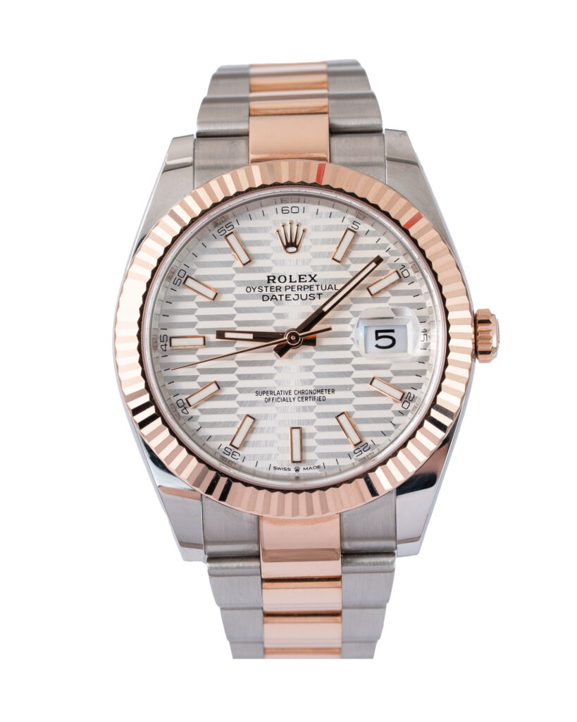 brand: Rolex Reference: 126331 Model: Datejust case MATERIAL: Steel strap: Bracelet case Size (MM): 41mm Dial colour: Silver Bezel: Rose Gold Year: 12/2022 Condition: Excellent Box papers : Paperwork/box