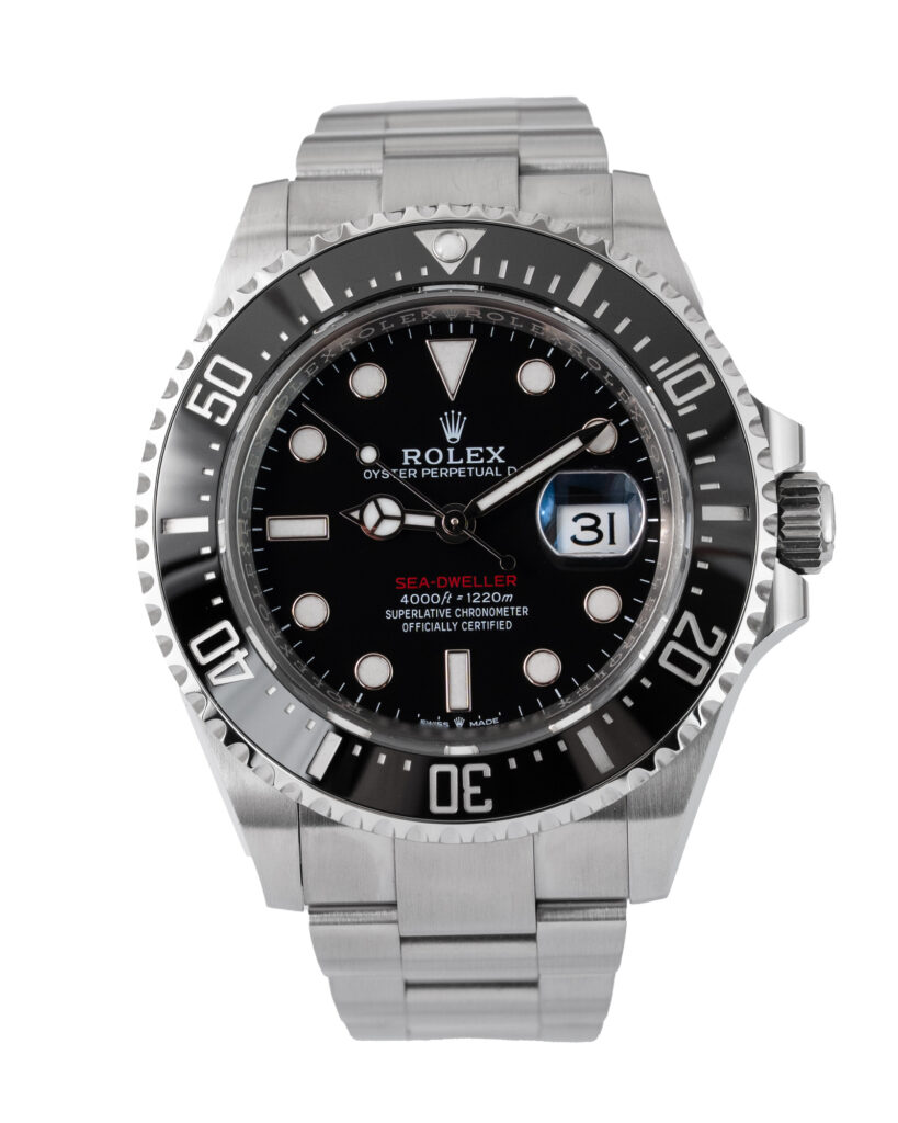 brand: Rolex Reference: 126600 Model: Sea-Dweller case MATERIAL: Steel strap: Bracelet case Size (MM): 43mm Dial colour: Black Bezel: Ceramic Year: 12/2022 Condition: Excellent Box papers : Paperwork/box