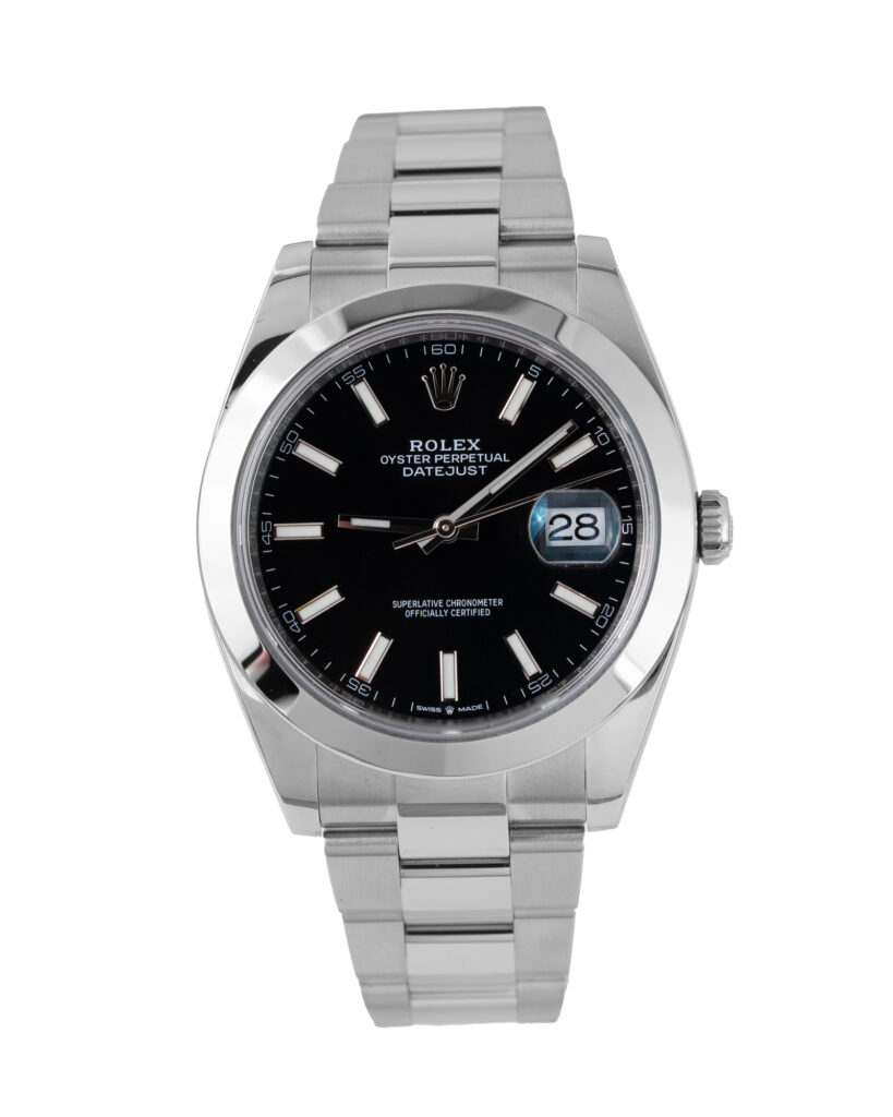 brand: Rolex Reference: 126300 Model: Datejust case MATERIAL: Steel strap: Bracelet case Size (MM): 41mm Dial colour: Black Bezel: Steel Year: 05/2023 Condition: Excellent Box papers : Paperwork/box