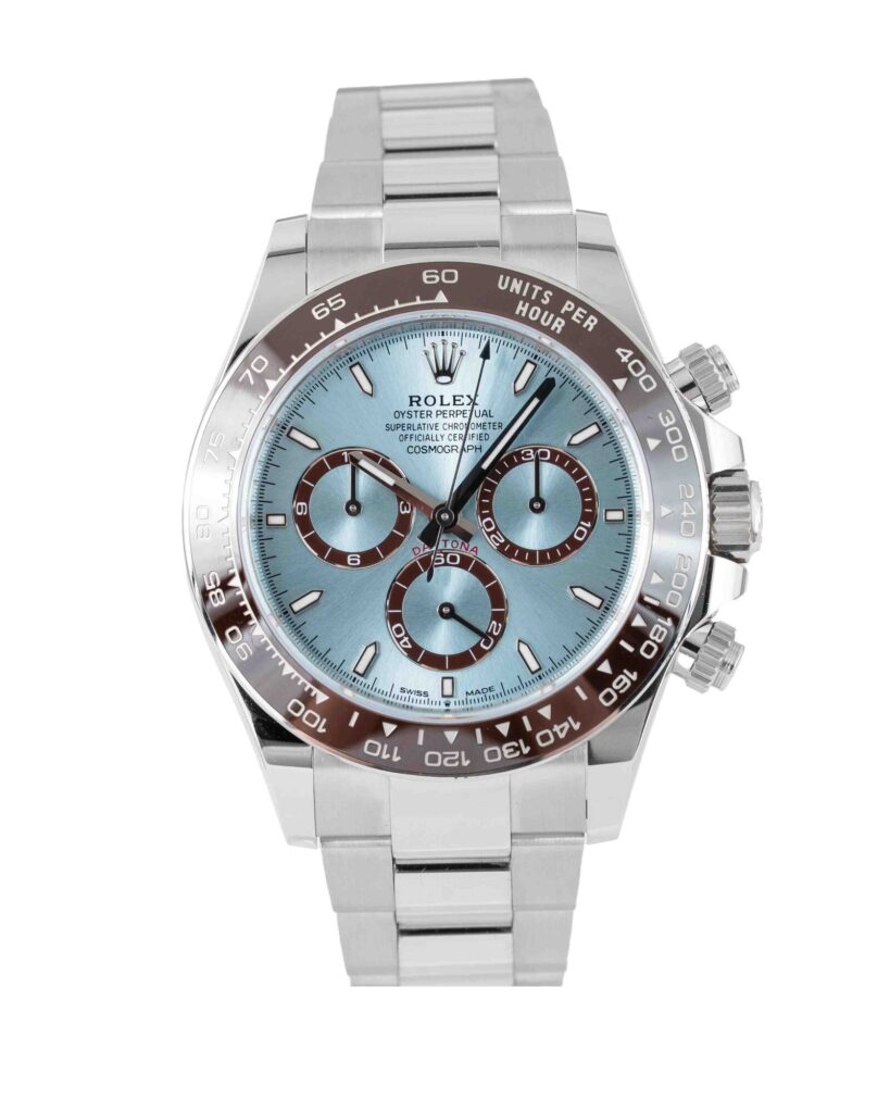 brand: Rolex Reference: 126506 Model: Daytona case MATERIAL: Platinum strap: Bracelet case Size (MM): 40mm Dial colour: Blue Bezel: Platinum Year: 08/2025 Condition: Unworn Box papers : Paperwork/box