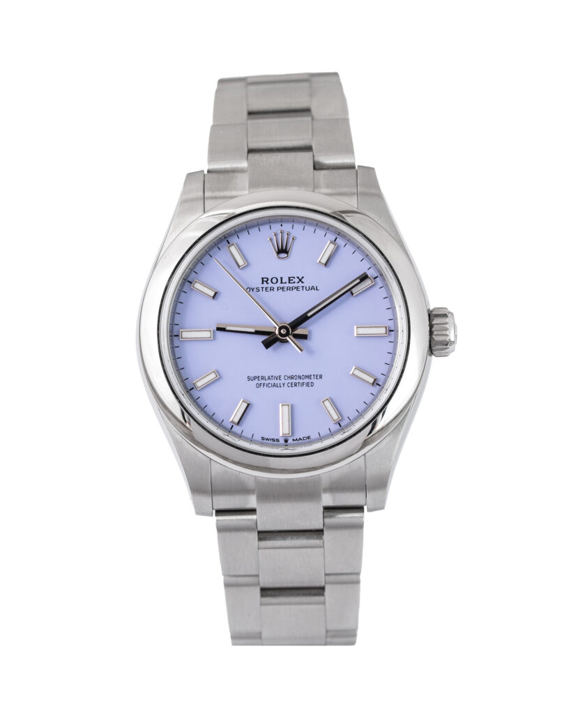 brand: Rolex Reference: 277200 Model: Oyster Perpetual case MATERIAL: Steel strap: Bracelet case Size (MM): 31mm Dial colour: Lavender Bezel: Steel Year: 06/2025 Condition: Excellent Box papers : Paperwork/box