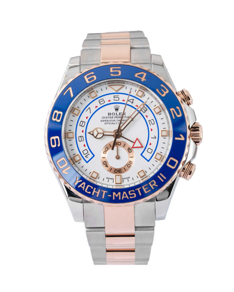 brand: Rolex Reference: 116681 Model: Yacht-Master II case MATERIAL: Steel & Rose Gold strap: Bracelet case Size (MM): 44mm Dial colour: White Bezel: Ceramic Year: 09/2018 Condition: Excellent Box papers : Paperwork/box