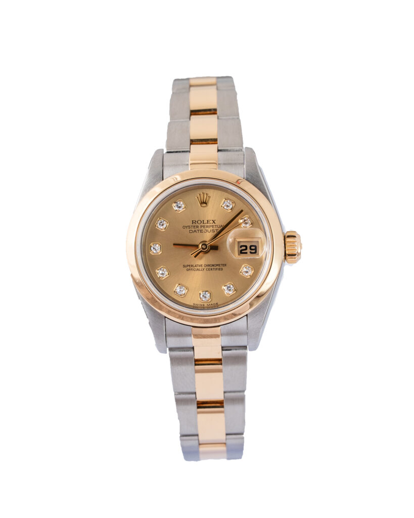 brand: Rolex Reference: 79163 Model: Datejust case MATERIAL: Steel & Yellow Gold strap: Bracelet case Size (MM): 26mm Dial colour: Champagne Bezel: Yellow Gold Condition: Excellent Box papers : Paperwork/box