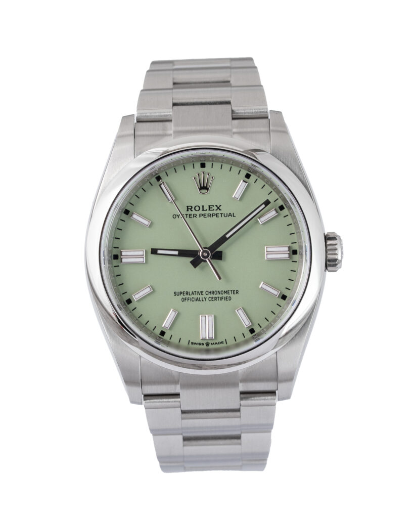 brand: Rolex Reference: 126000 Model: Oyster Perpetual case MATERIAL: Steel strap: Bracelet case Size (MM): 36mm Dial colour: Green Bezel: Steel Year: 08/2025 Condition: Unworn Box papers : Paperwork/box