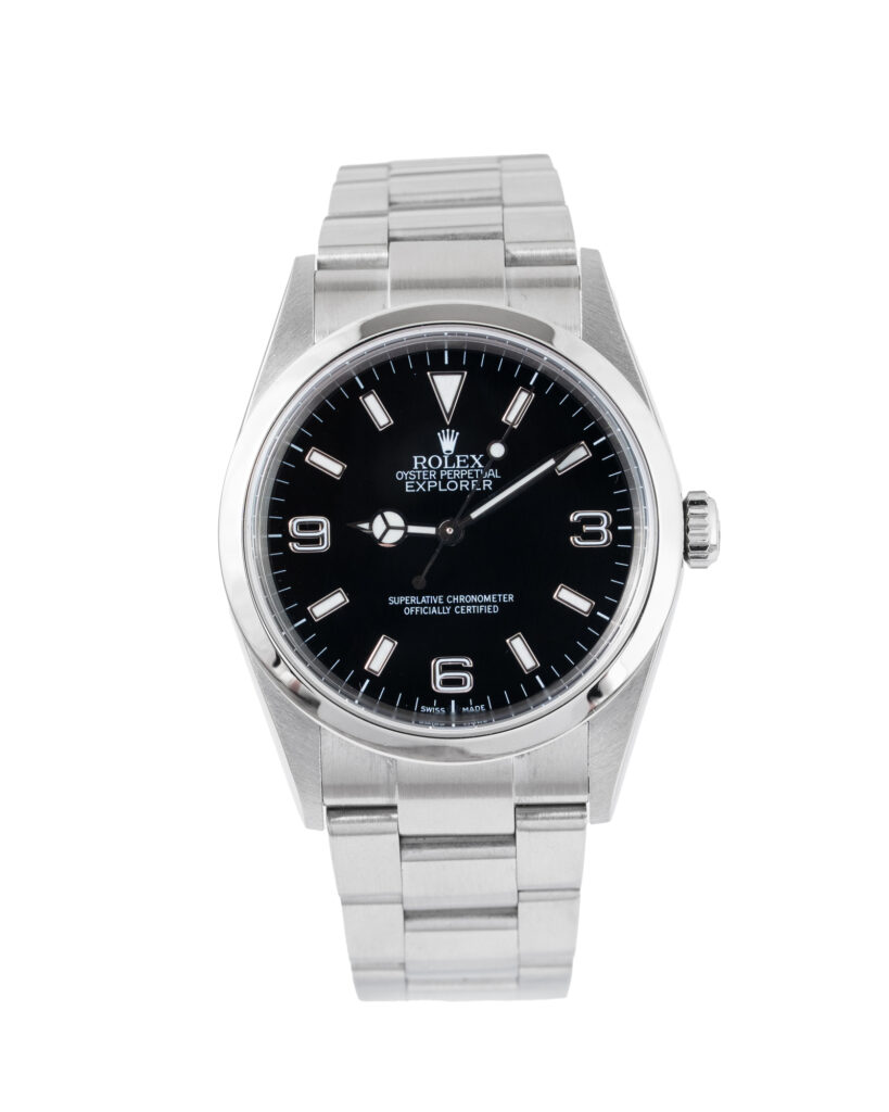 brand: Rolex Reference: 114270 Model: Explorer case MATERIAL: Steel strap: Bracelet case Size (MM): 36mm Dial colour: Black Bezel: Steel Condition: Excellent Box papers : Box