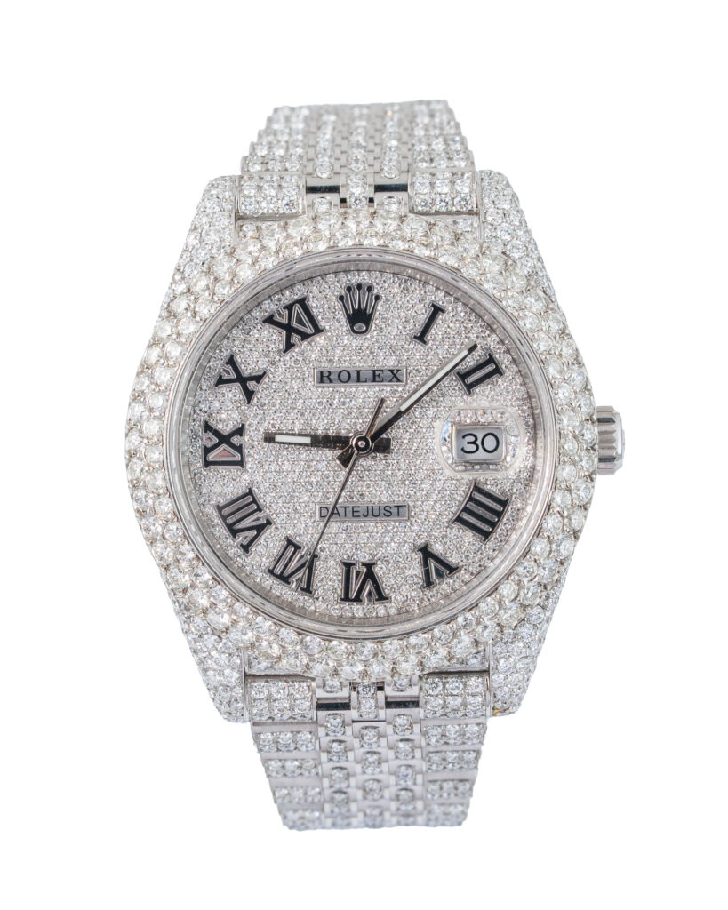 brand: Rolex Reference: 126300 Model: Datejust case MATERIAL: Steel strap: Bracelet case Size (MM): 41mm Dial colour: Diamond Bezel: Diamond Year: 10/2017 Condition: Excellent Box papers : Paperwork/box