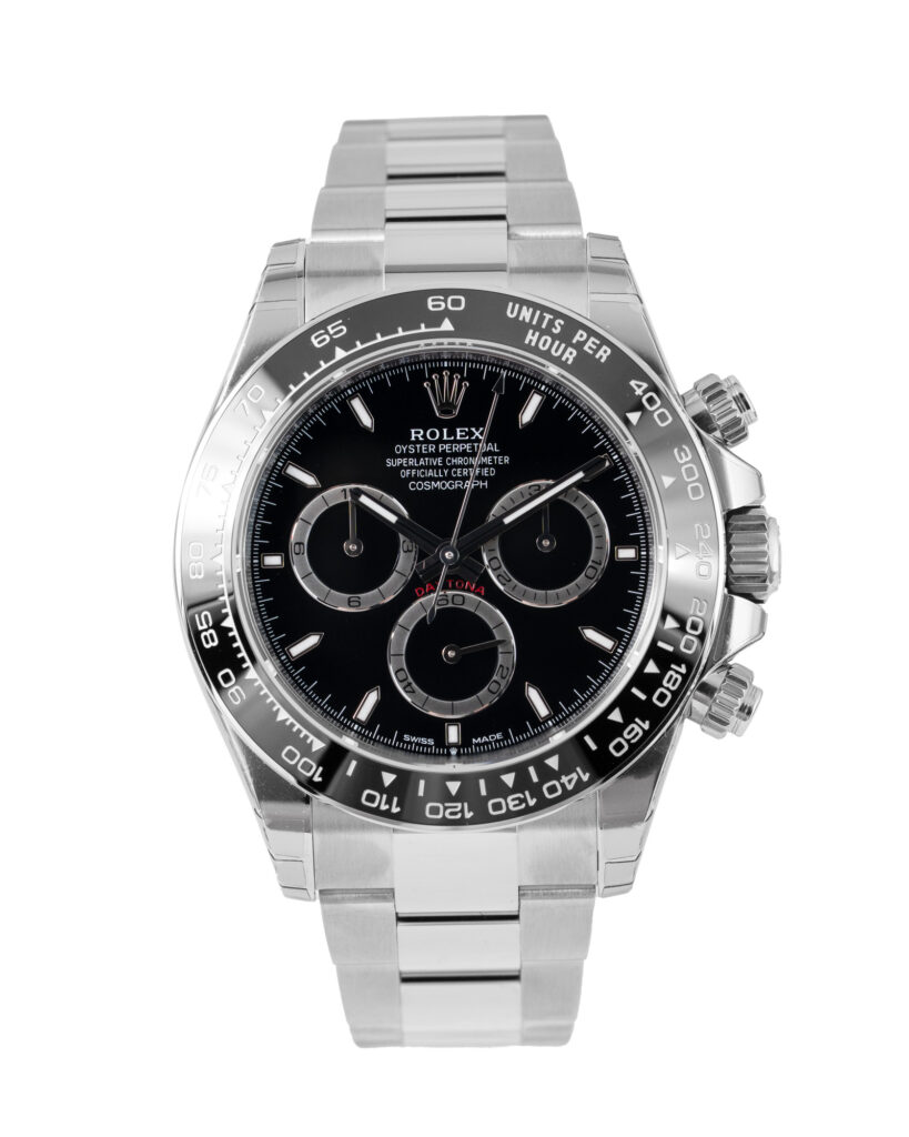 brand: Rolex Reference: 126500LN Model: Daytona case MATERIAL: Steel strap: Bracelet case Size (MM): 40mm Dial colour: Black Bezel: Ceramic Year: 07/2025 Condition: Unworn Box papers : Paperwork/box