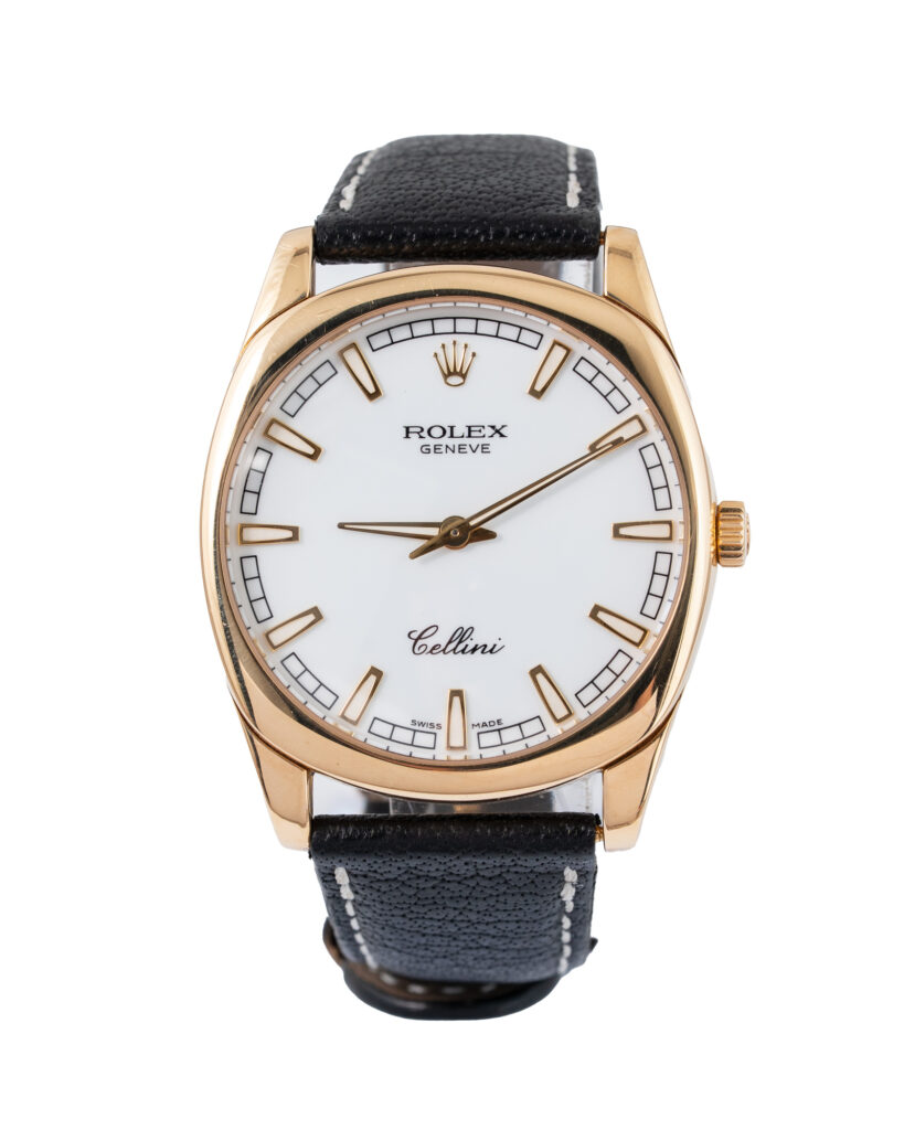brand: Rolex Reference: 4243/8 Model: Cellini case MATERIAL: Yellow Gold strap: Leather case Size (MM): 38mm Dial colour: White Bezel: Yellow Gold Year: 08/2006 Condition: Excellent Box papers : Paperwork/box