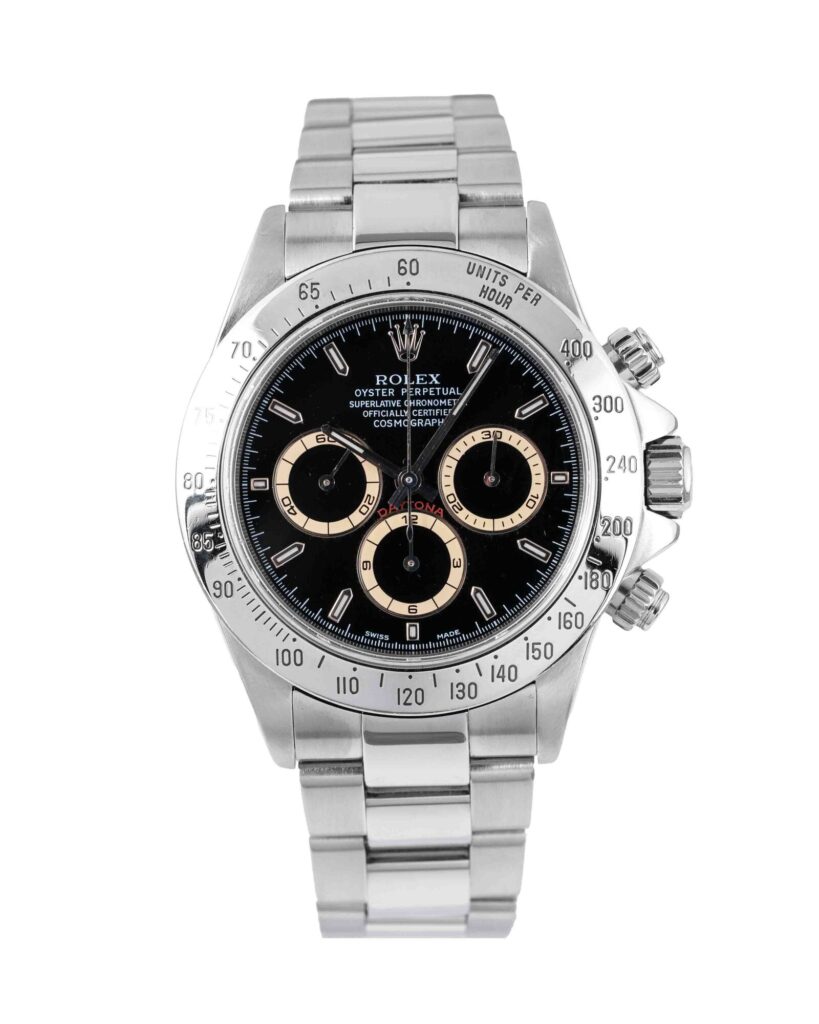 brand: Rolex Reference: 16520 Model: Daytona case MATERIAL: Steel strap: Bracelet case Size (MM): 40mm Dial colour: Black Bezel: Steel Year: 06/1999 Condition: Excellent Box papers : Paperwork/box