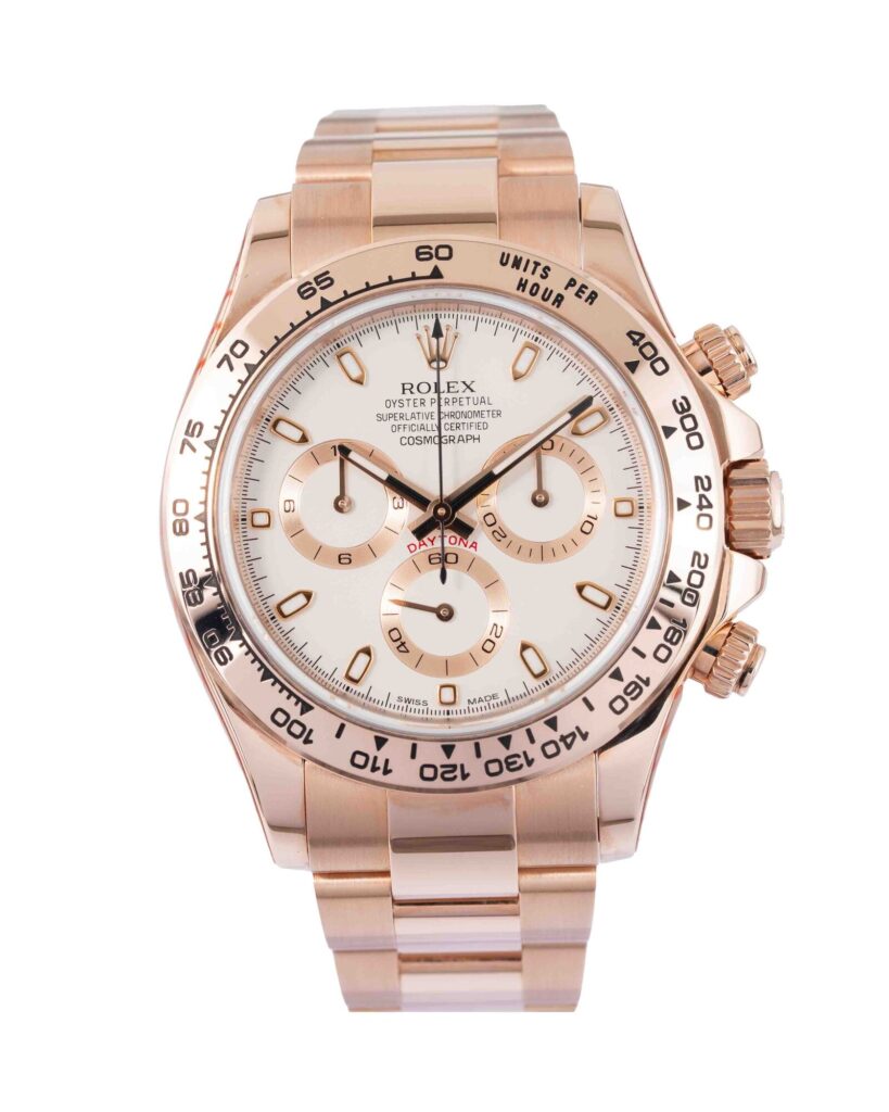 brand: Rolex Reference: 116505 Model: Daytona case MATERIAL: Rose Gold strap: Bracelet case Size (MM): 40mm Dial colour: Ivory Bezel: Rose Gold Year: 06/2016 Condition: Excellent Box papers : Complete