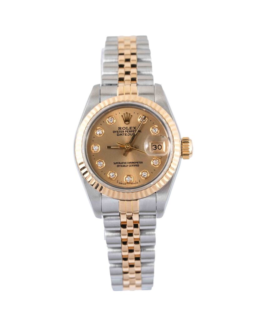 brand: Rolex Reference: 69173 Model: Datejust case MATERIAL: Steel & Yellow Gold strap: Bracelet case Size (MM): 26mm Dial colour: Champagne Bezel: Yellow Gold Year: 05/1986 Condition: Excellent Box papers : Box