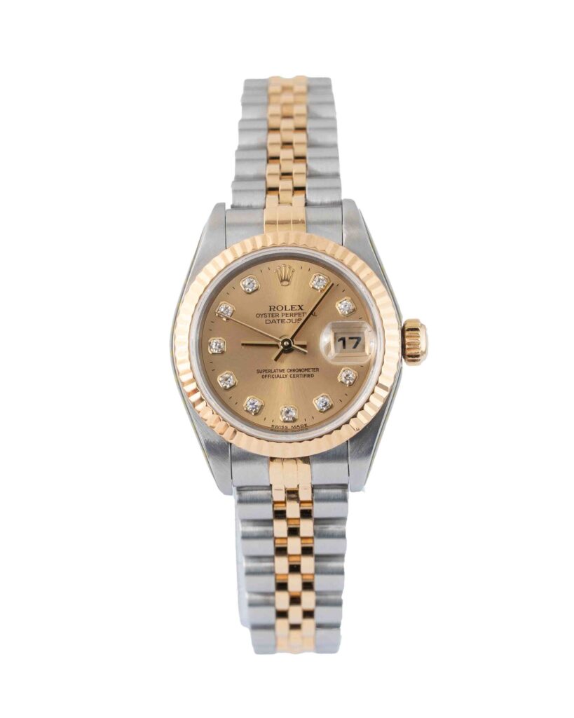 brand: Rolex Reference: 79173 Model: Datejust case MATERIAL: Steel & Yellow Gold strap: Bracelet case Size (MM): 26mm Dial colour: Champagne Bezel: Yellow Gold Year: 10/2001 Condition: Excellent Box papers : Complete