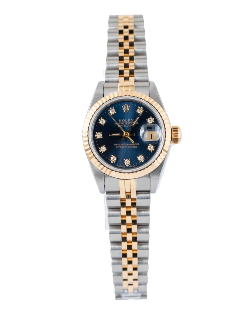 brand: Rolex Reference: 69173 Model: Datejust case MATERIAL: Steel & Yellow Gold strap: Bracelet case Size (MM): 26mm Dial colour: Black Bezel: Yellow Gold Condition: Good Box papers : Paperwork/box