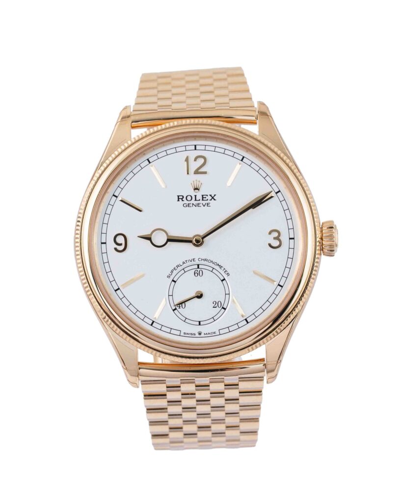 brand: Rolex Reference: 52508 Model: 1908 case MATERIAL: Yellow Gold strap: Bracelet case Size (MM): 39mm Dial colour: White Bezel: Yellow Gold Year: 06/2025 Condition: Unworn Box papers : Paperwork/box