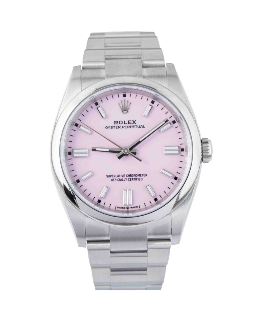 brand: Rolex Reference: 126000 Model: Oyster Perpetual case MATERIAL: Steel strap: Bracelet case Size (MM): 36mm Dial colour: Pink Bezel: Steel Year: 05/2025 Condition: Unworn Box papers : Paperwork/box