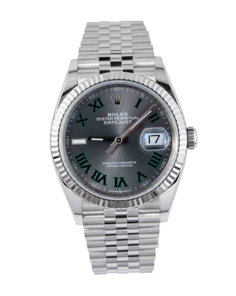 brand: Rolex Reference: 126234 Model: Datejust case MATERIAL: Steel strap: Bracelet case Size (MM): 36mm Dial colour: Grey Bezel: Steel Year: 08/2022 Condition: Excellent Box papers : Paperwork/box