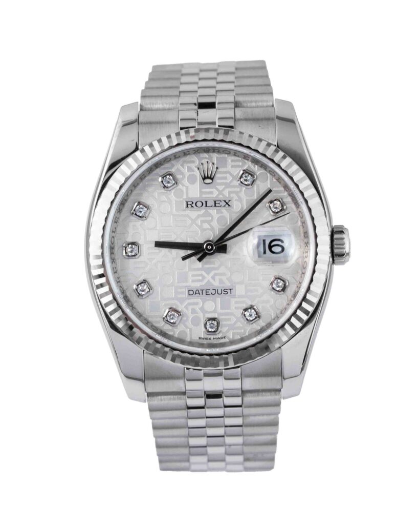 brand: Rolex Reference: 116234 Model: Datejust case MATERIAL: Steel strap: Bracelet case Size (MM): 36mm Dial colour: Silver Bezel: Steel Condition: Excellent Box papers : Paperwork/box